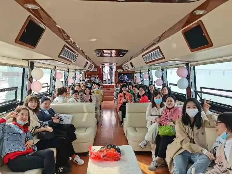 女神们先从蔡家煲码头乘坐游艇出发,一边欣赏湖光春色,一边组织小活动,开开心心前往建德梅城旅游码头。